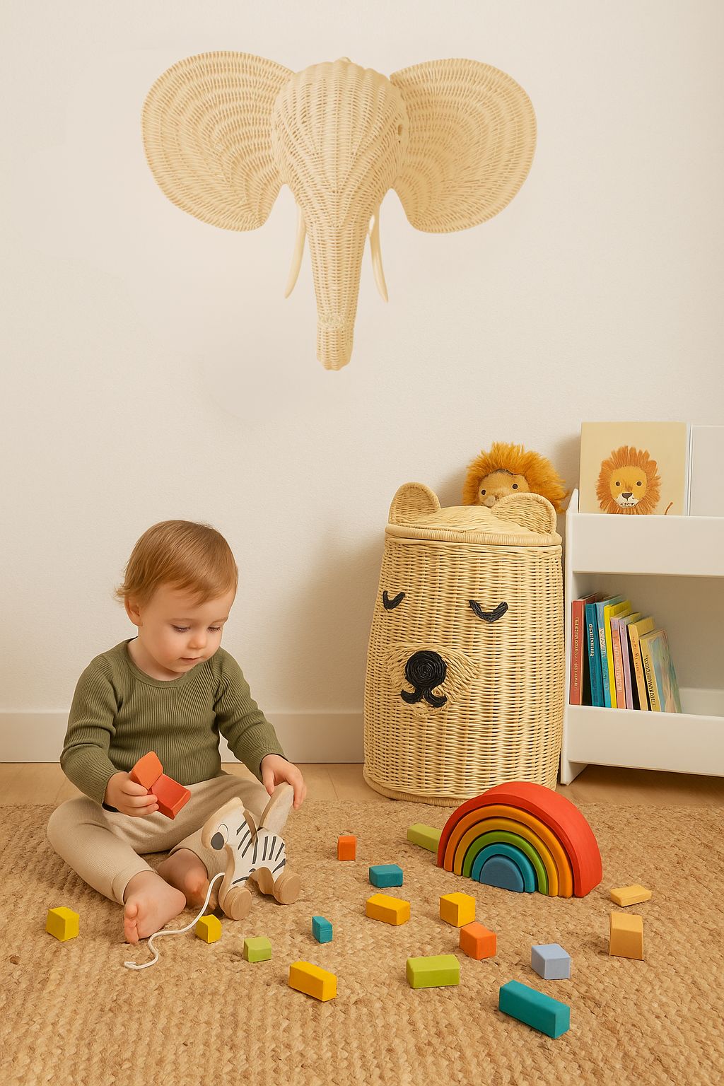 Bring the magic of the wild into your child’s room with this handcrafted rattan elephant wall décor. Made from 100% natural, sustainable rattan, this beautiful piece adds a warm and playful touch to any boho nursery, safari-themed kids room, or Montessori play space.